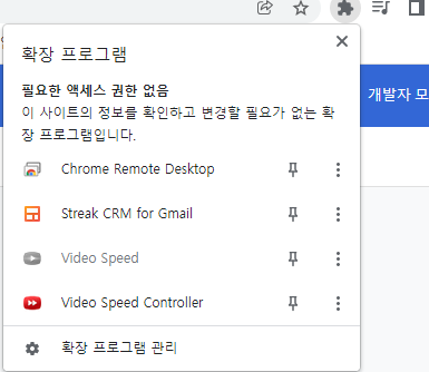 2. 크롬 주소창 옆에 있는 확장 프로그램 관리 버튼을 누른다